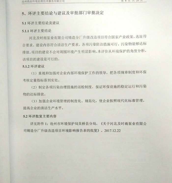 河北及時雨泵業有限公司鑄造分廠升級改造項目竣工環境保護驗收意見公示
